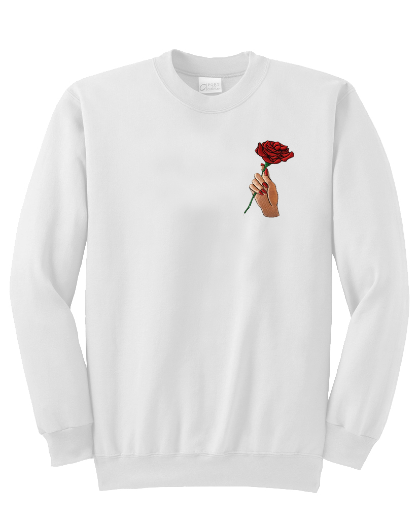 About A rose flower in hand sweatshirt from newgraphictees.com