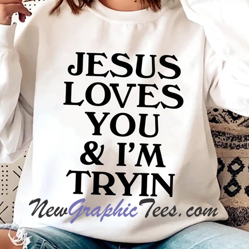 About Funny Jesus Loves You & I’m Tryin Sweatshirt from newgraphictees.com